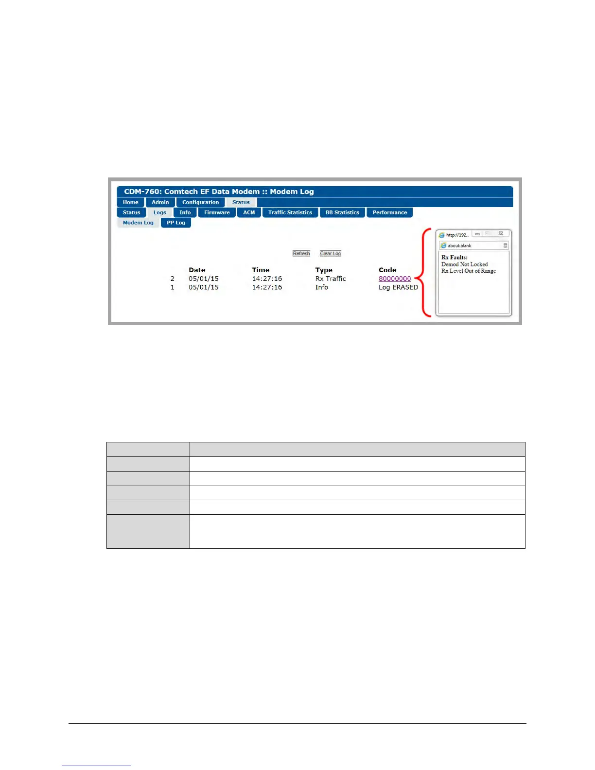 Figure 7-29. Status | Logs | Modem Log Page