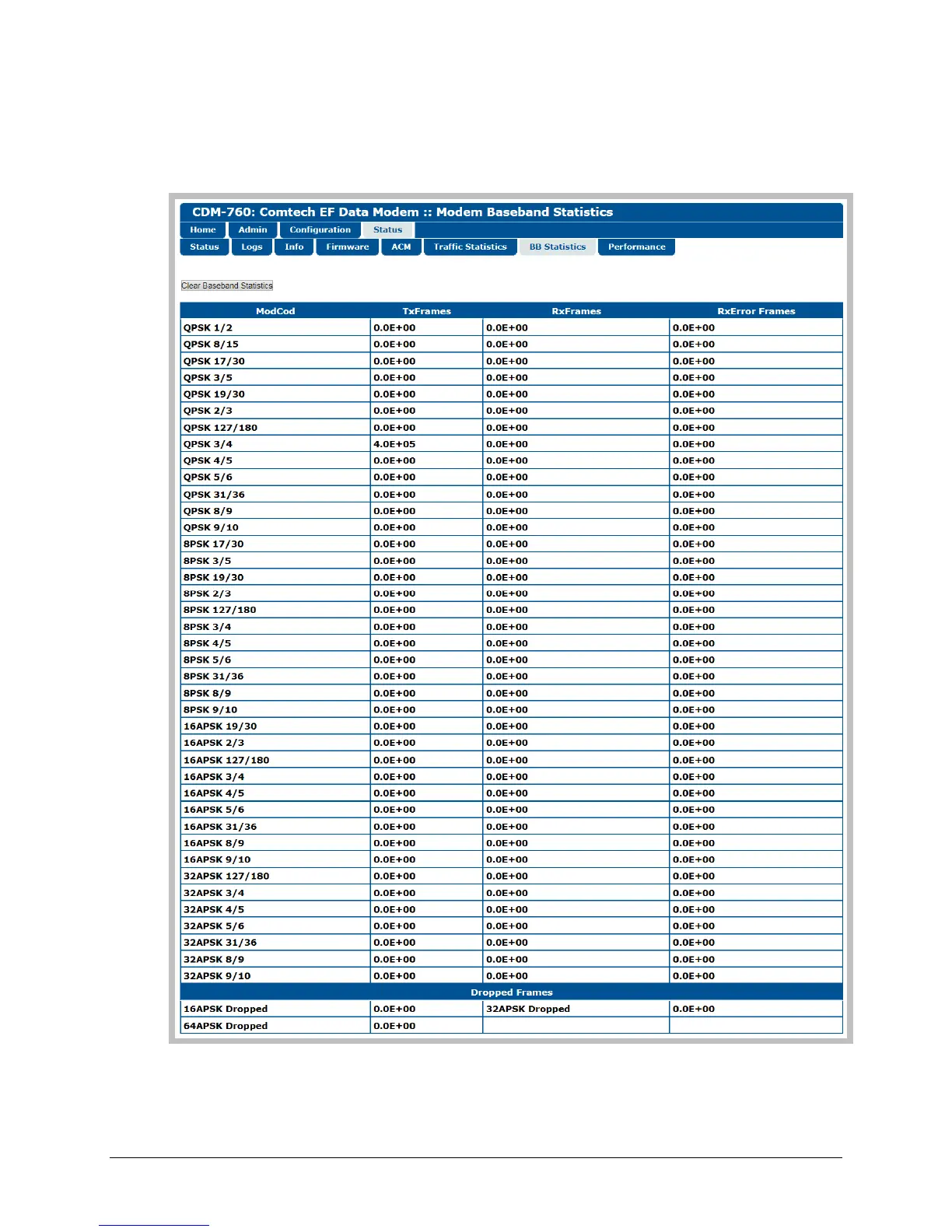 Click [Clear Baseband Statistics] to clear/reset the page statistics buffers.