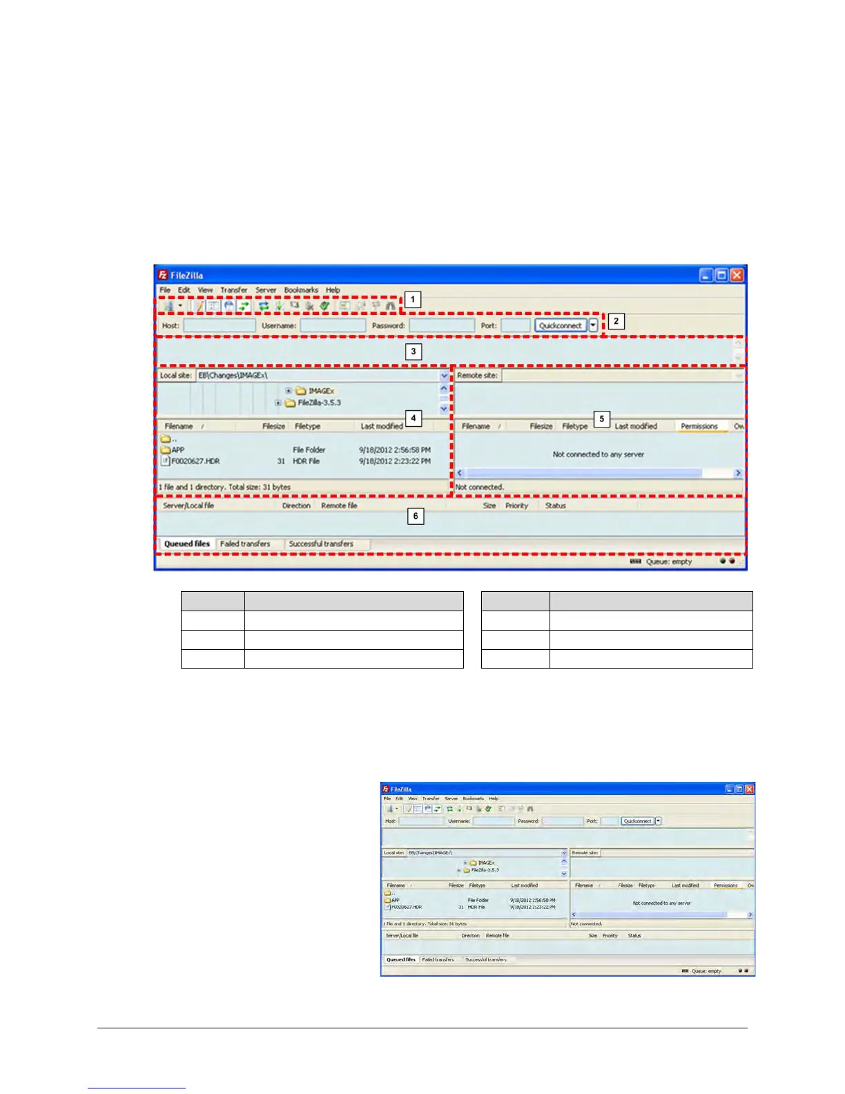 Figure A-1 shows the operating features of the FileZilla FTP Utility. The screen shots featured in