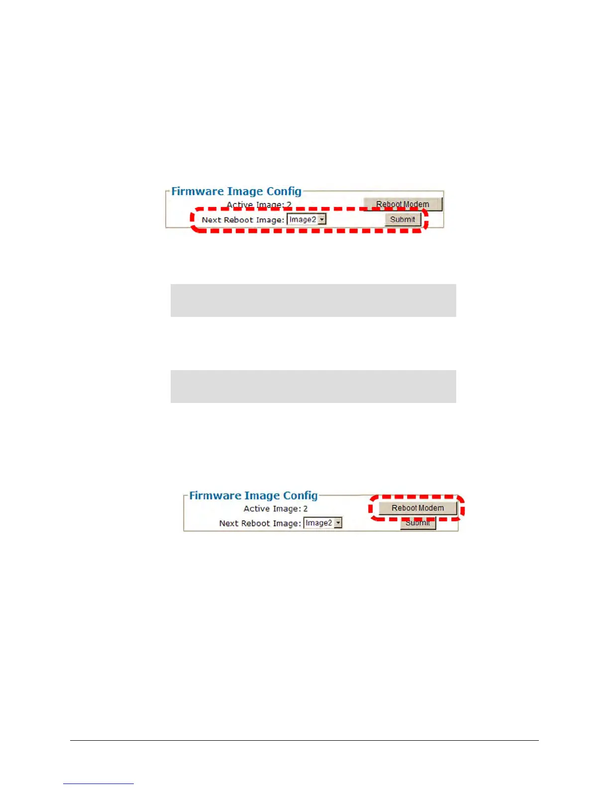 • For a soft reboot – From the Firmware Image Config section of the CDM-760 HTTP