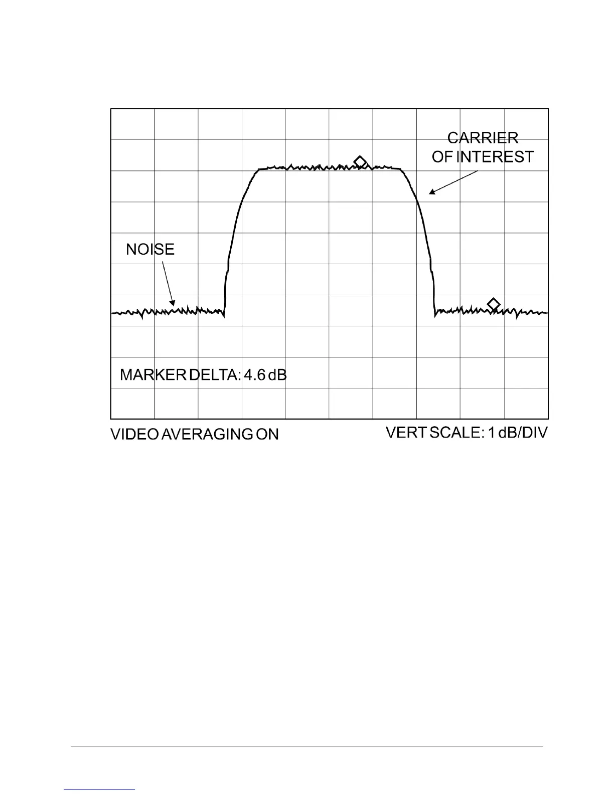 Example: In the diagram that follows, the (Co+No)/No measured is 4.6 dB. If Rate 1/2 QPSK is
