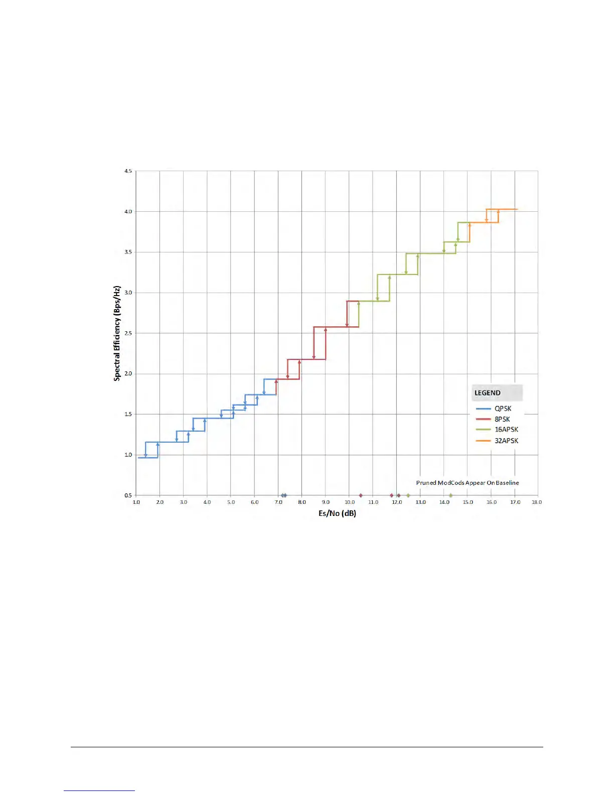 baseline of the plot. The transition to the next higher ModCod is the Es/No (spec) + Es/No Target
