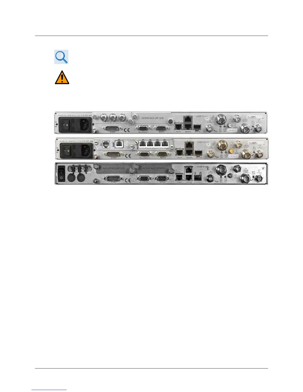 • (2X) J11 | IF RX IN and J13 | IF TX OUT Type ‘BNC’ female connectors for 75Ω (standard) or