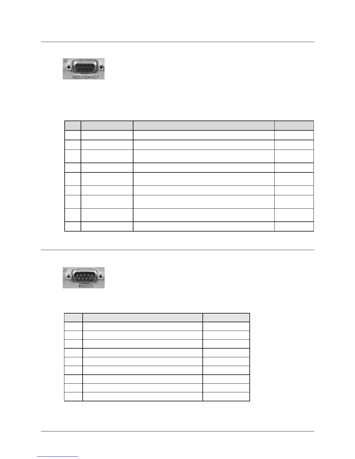 The J2 | REDUNDANCY 9-pin Type ‘D’ female (DB-9F) connector provides the