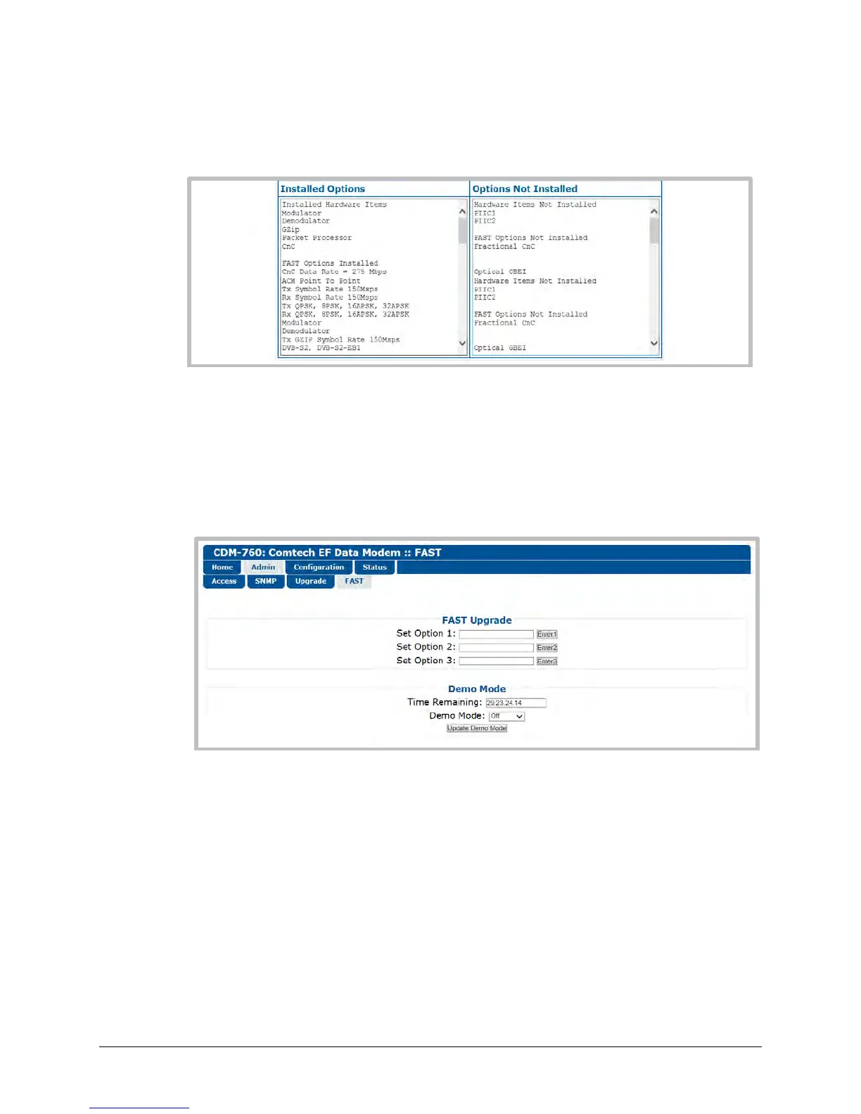 2. To view currently installed FAST features, log in to the CDM-760 HTTP Interface and open