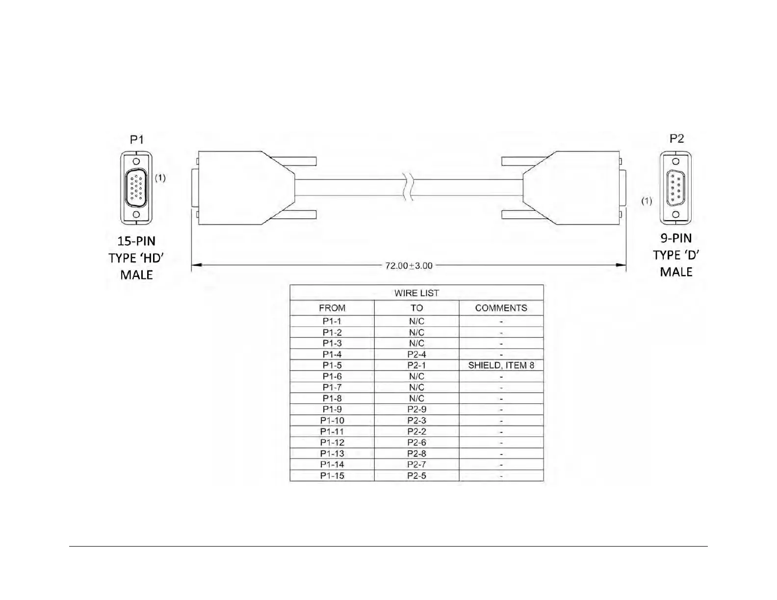 B.3.1 Switch-to-Modem, Control Cable for CDM-625/A (HD-15MDB-9M)