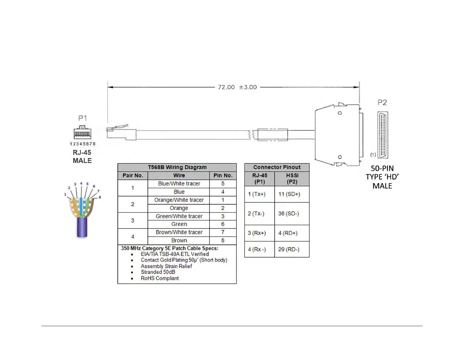 Comtech EF Data CRS-300 - Modem-To-User, Ethernet Data Cable for CDM-625;A (RJ-45 MHD-50 M; Figure B-17. Ethernet Data Cable for CDM-625;A (CA-0000121)