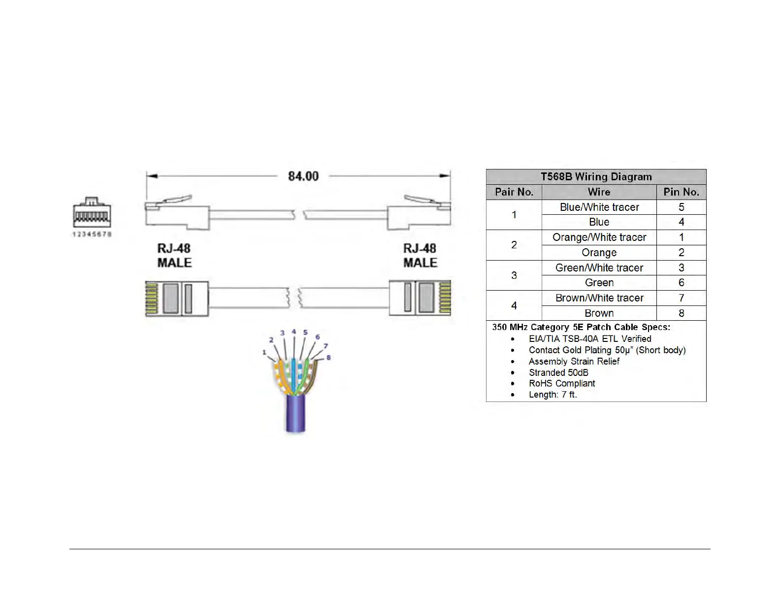 B.4.7 Switch-to-Modem / Modem-to-User, Gigabit Ethernet, Quad E1 RJ-48 Connector Cable