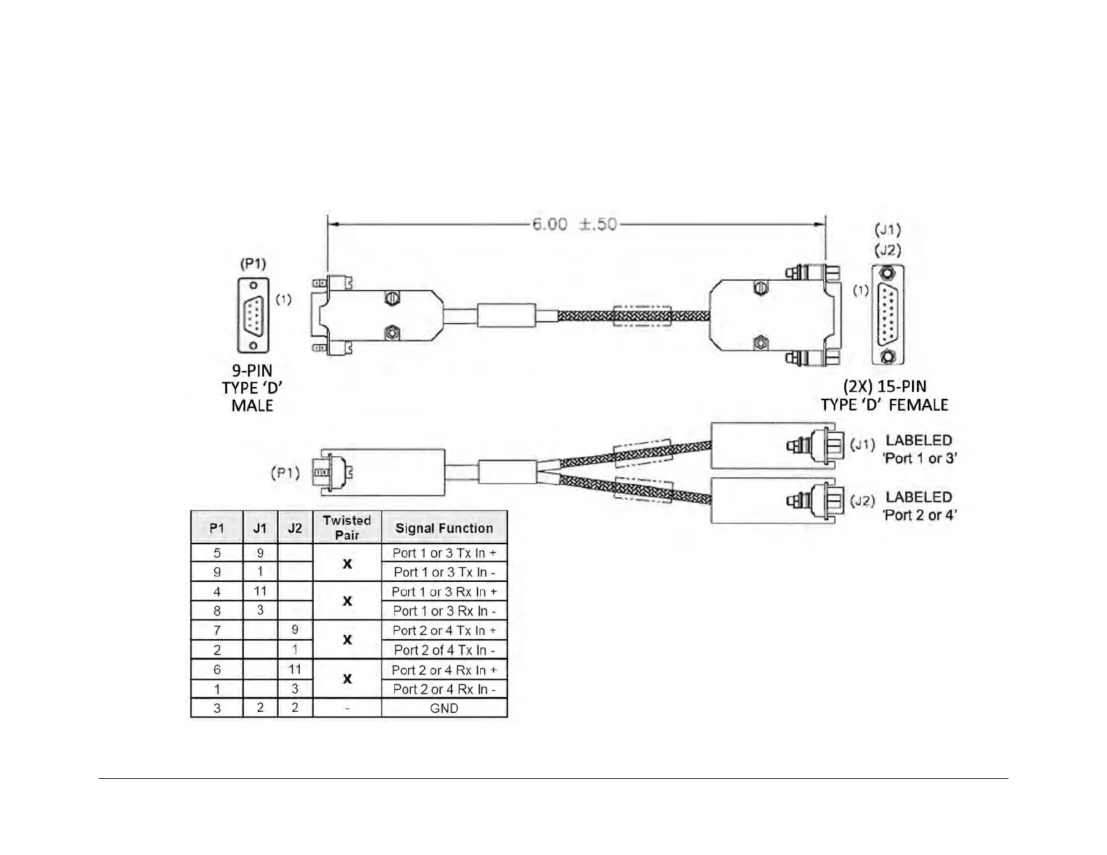 You may use this cable to adapt the Type ‘D’ 9-pin female Balanced G.703 or Auxiliary G.703 data connectors to a standard Type ‘D’ 15-