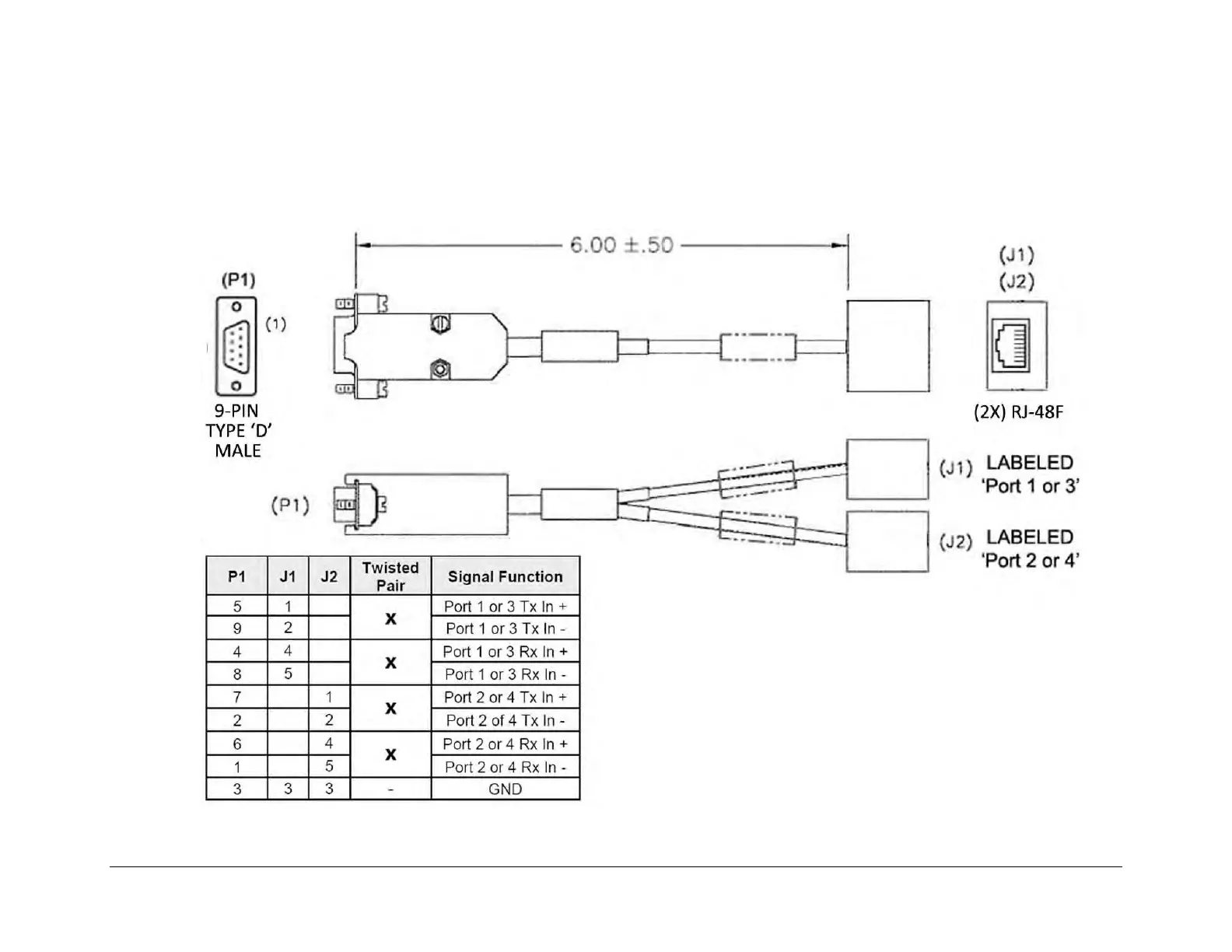 You may use this cable to adapt the Type ‘D’ 9-pin female Balanced G.703 or Auxiliary G.703 data connectors to a standard RJ-48