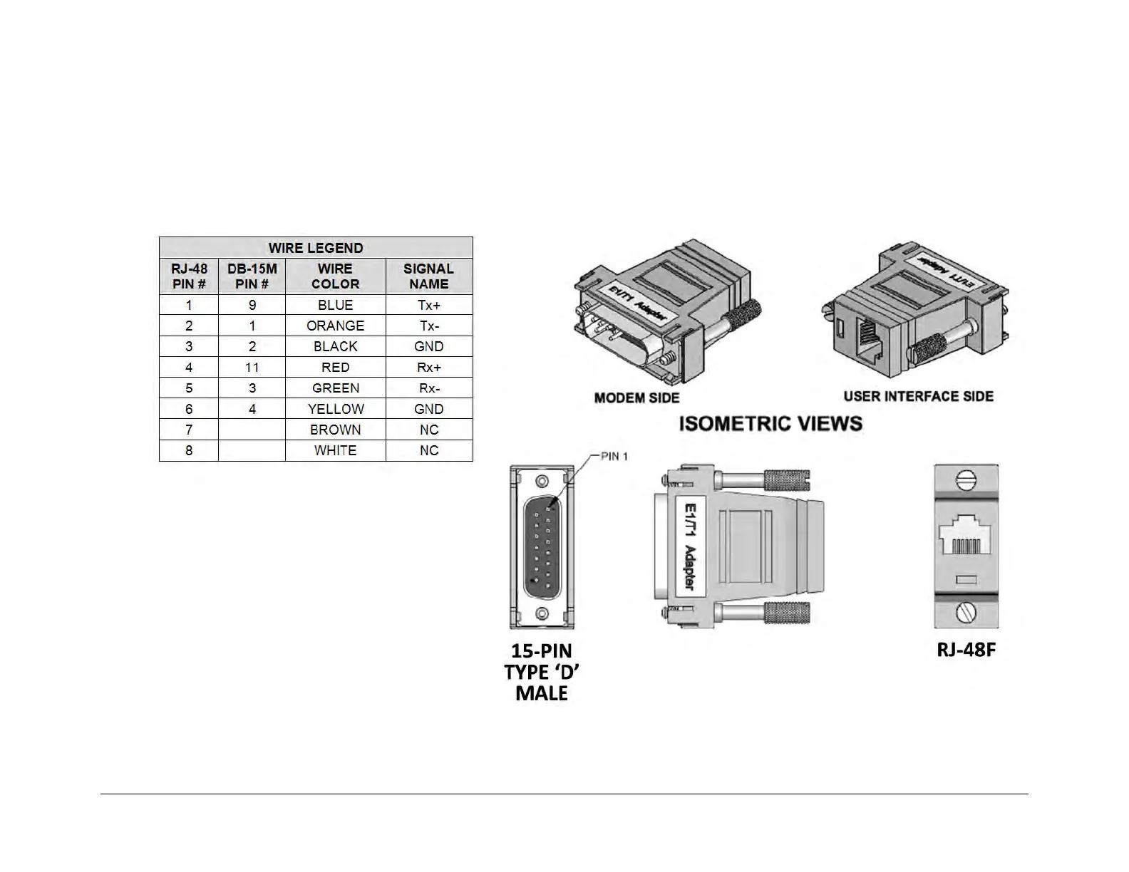 B.4.16 Modem-to-User, Optional T1/E1 Adapter for CDM-570/A, CDM-570L/AL, CDM-600/L