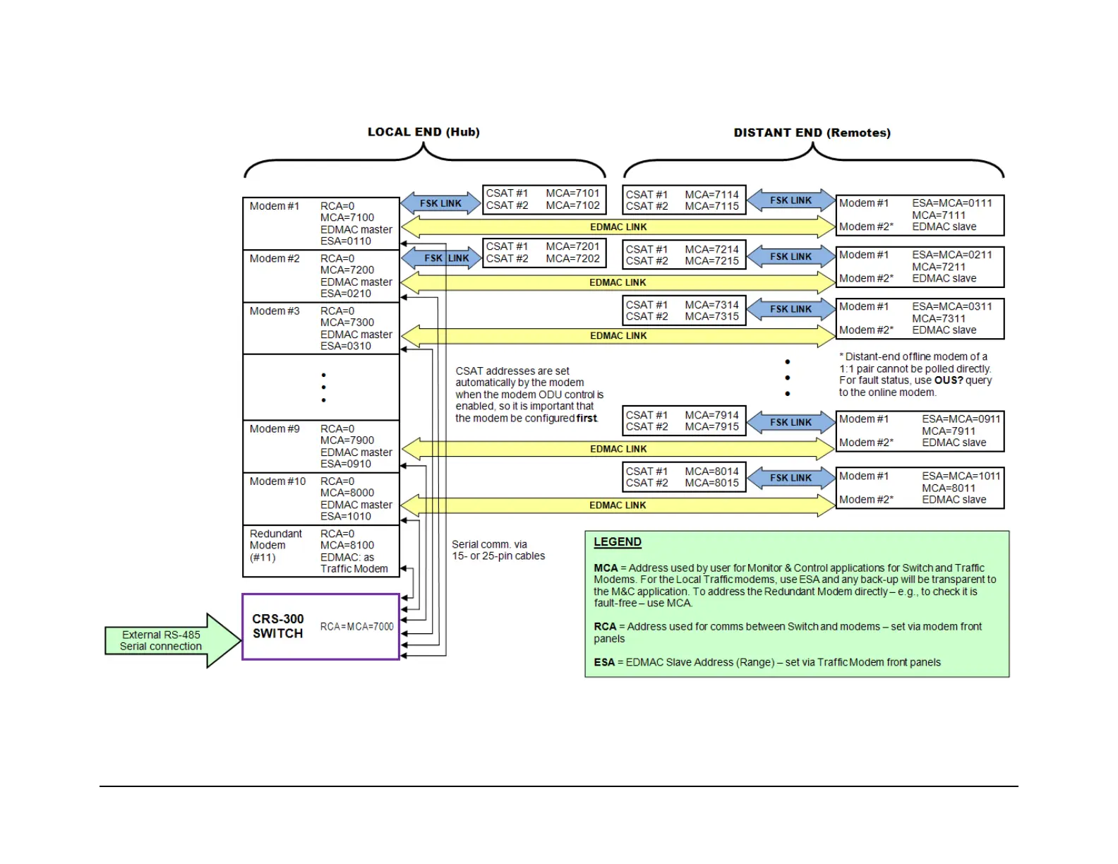 Figure C-2. CRS-300 Addressing Scheme Example: External EIA-485 with CDM-625/A, -570/A, -570L/AL, -600/L Modems