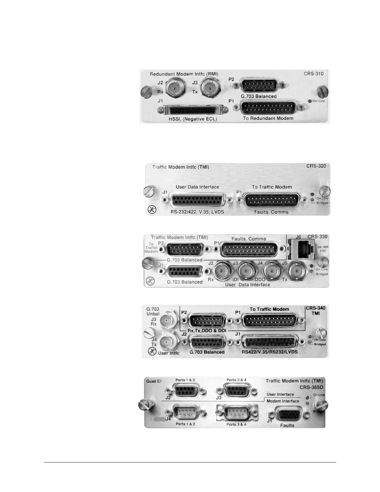 Comtech EF Data CRS-300 - Figure 1-12. CRS-365 D TMI E1 (1-4 Ports) (PL;12985-2); Figure 1-8. CRS-310 RMI (PL;9579-1); Figure 1-9. CRS-320 TMI EIA-232;-422 (PL;9581-1); RMI Card