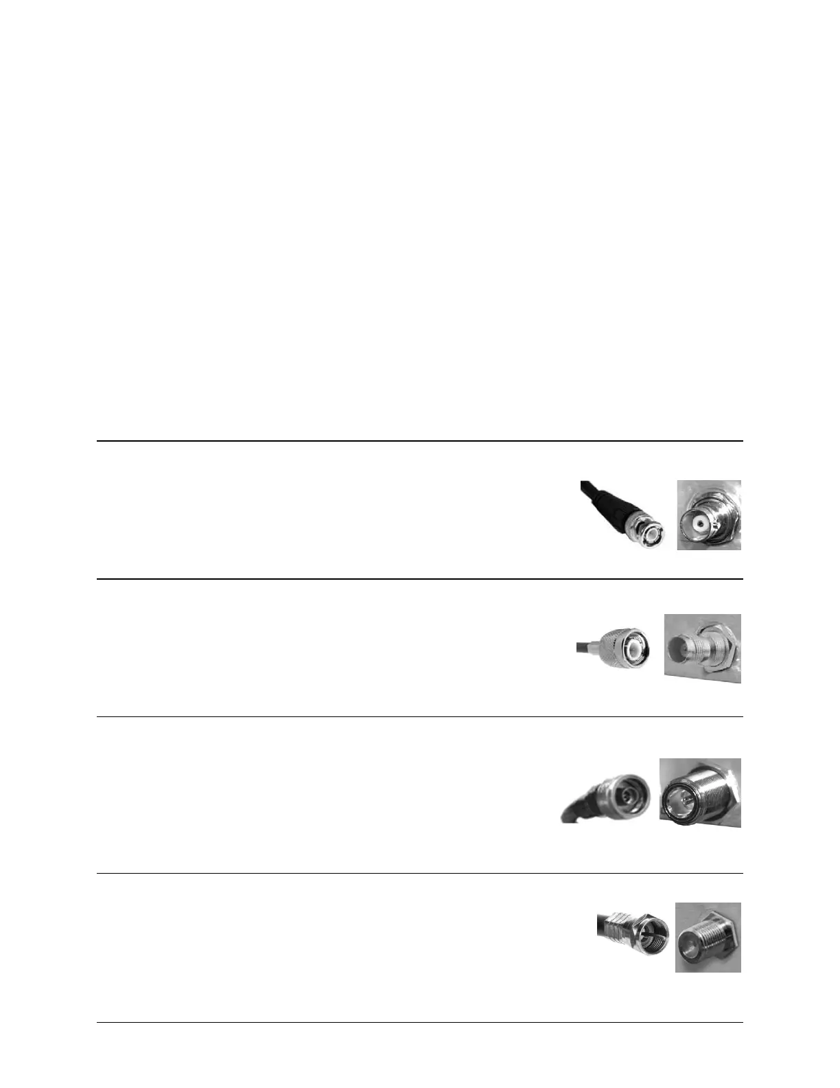 to Type ‘TNC’, Type ‘F’, and Type ‘SMA’ connectors.