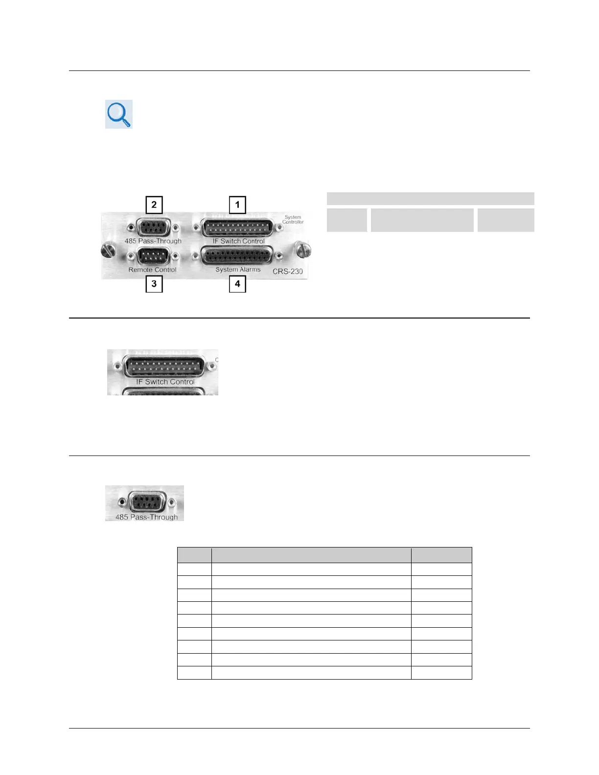 Use the DB-9F 485 Pass-Through connector on the CRS-230 only with
