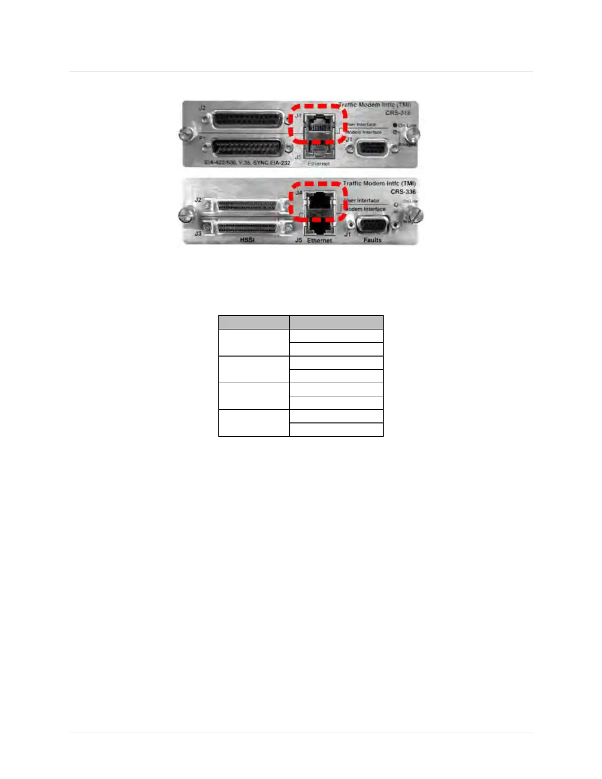 Interface (used for Ethernet Bridge Mode) connector – “J4” on the CRS-316 and CRS-336 TMIs.