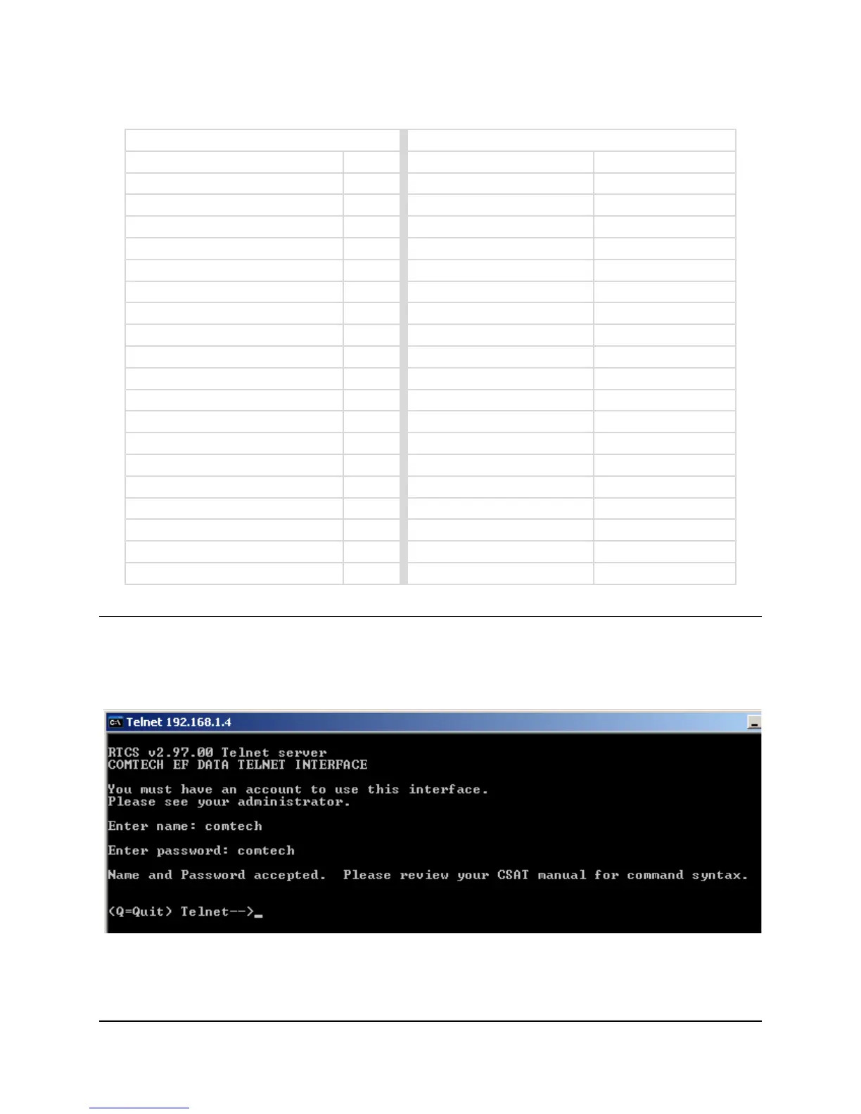 The unit has a Telnet interface for the equipment M&C operations. Log in to the Telnet interface