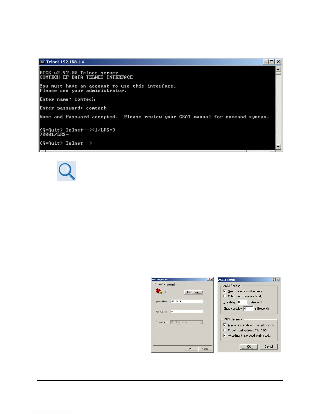 HyperTerminal terminal emulation program, configured as a Telnet client.