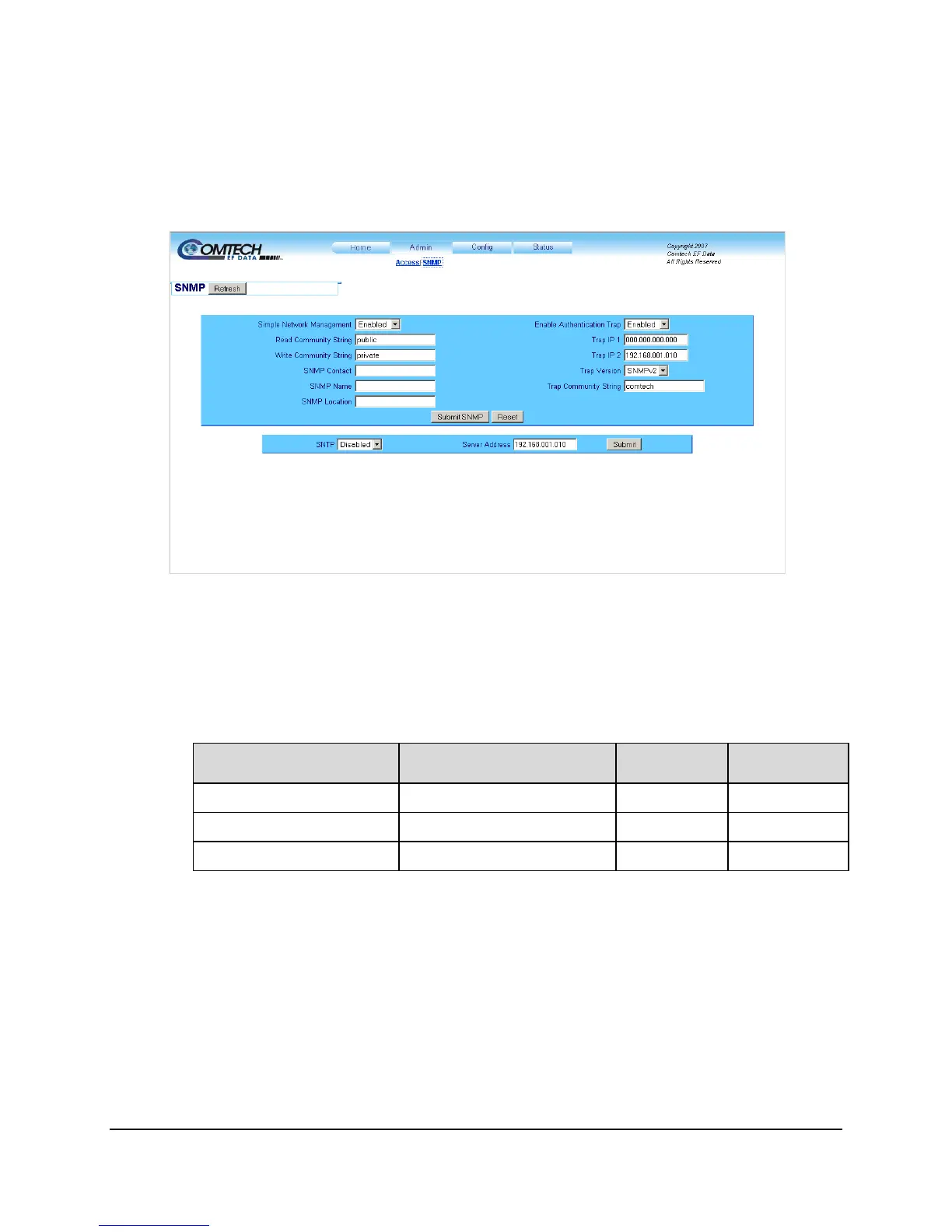 Read / Write / Trap Community Strings – These defaults are set at the factory. Change them as