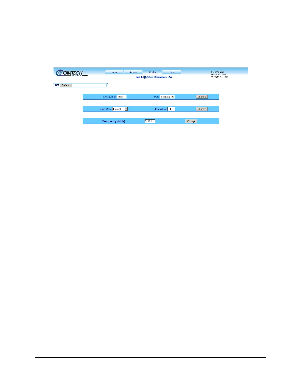 Use this page to configure the Receive (Rx) operational settings for the unit. At any time, click