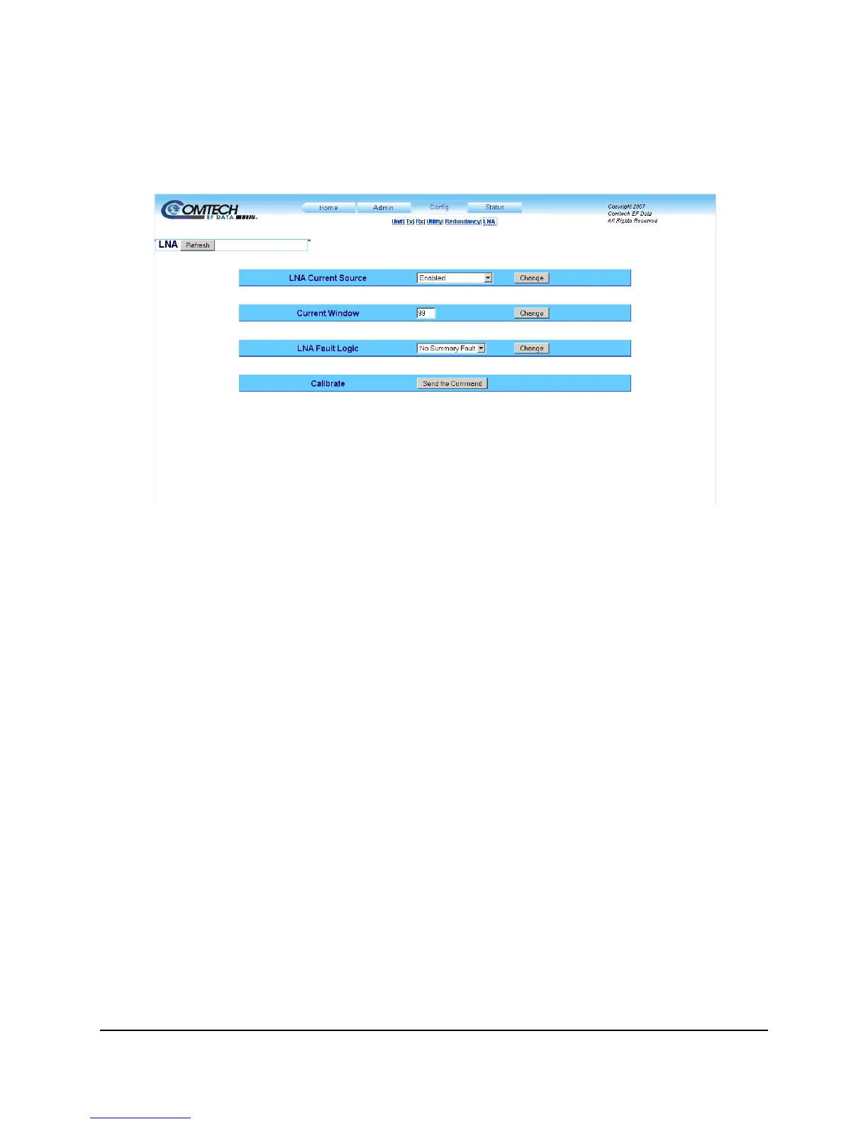 Use this page to configure the Low Noise Amplifier (LNA) current alarm settings. At any time,