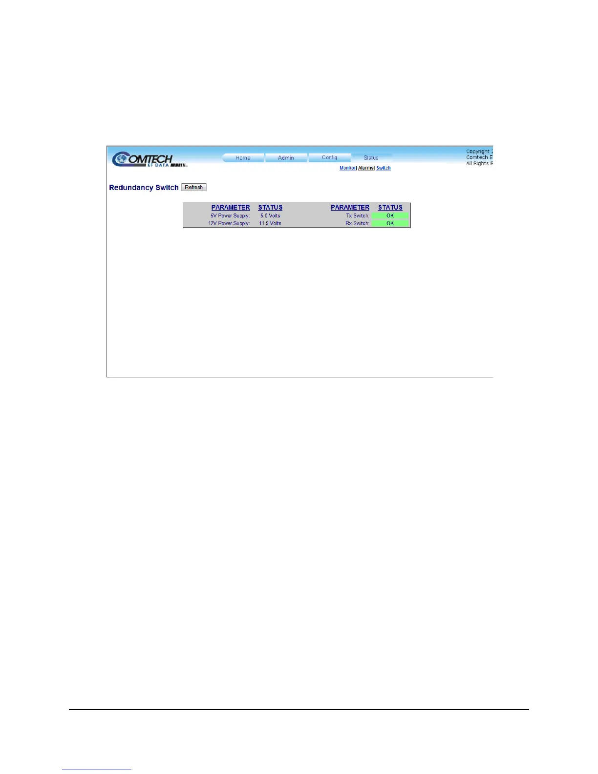 Use this read-only page to see the operating status of any Redundancy Switches used with the
