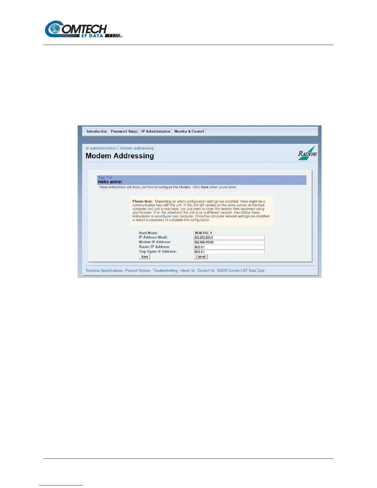 Figure 7-9. IP Administration | Modem Addressing Page Example