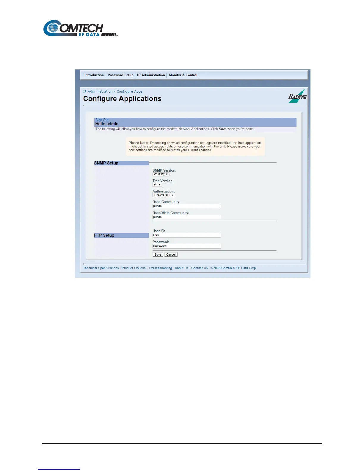 Comtech EF Data DMD1050TS - IP Administration | Configure Apps Page; Figure 7-10. IP Administration | Configure Apps Page Example
