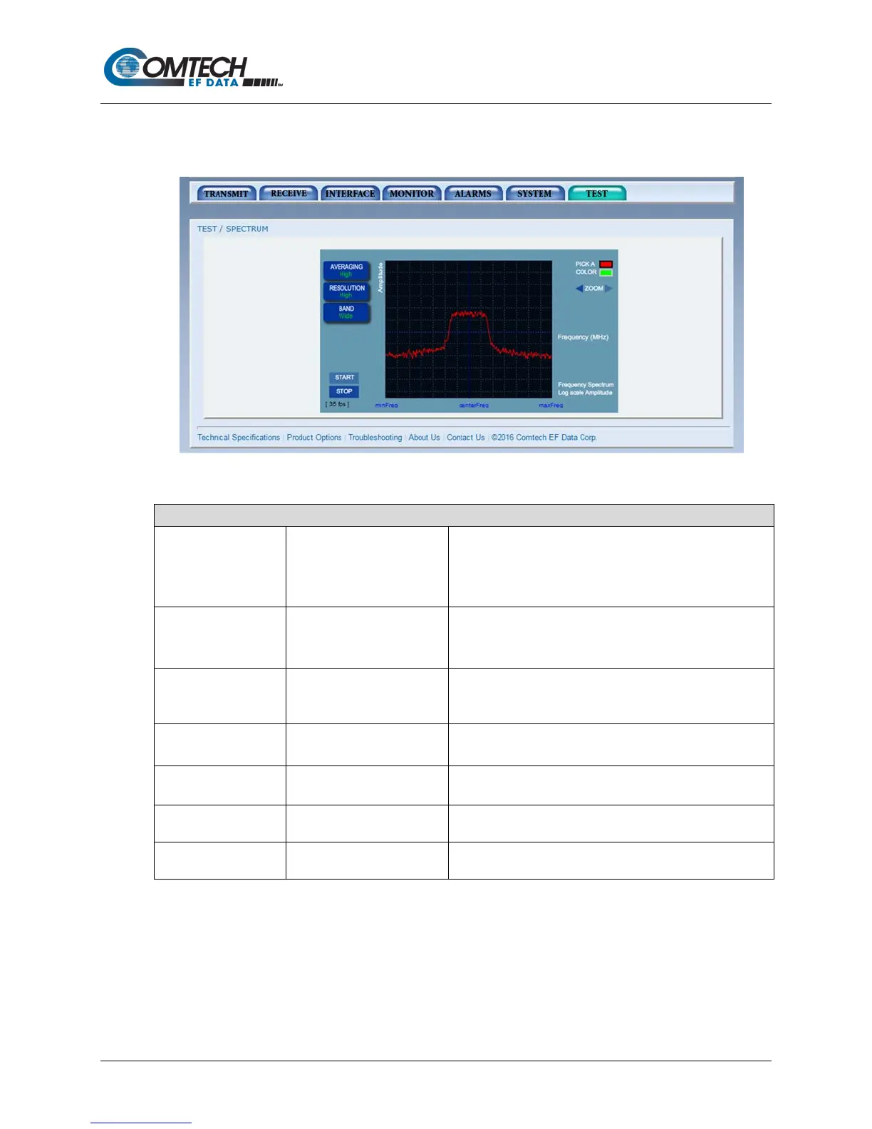 The Spectrum Plot page shows the RX Input spectrum sampled data as seen by the receiver,