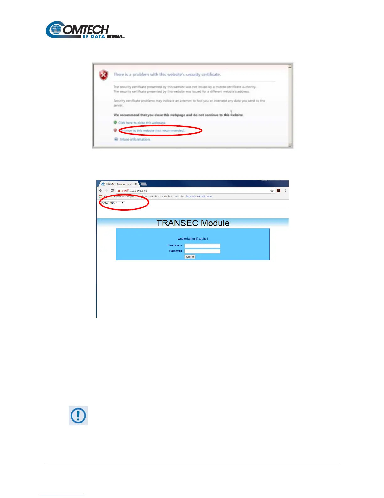 Crypto Officer: Connects to the secure TRANSEC Module HTTPS Interface (User Name and