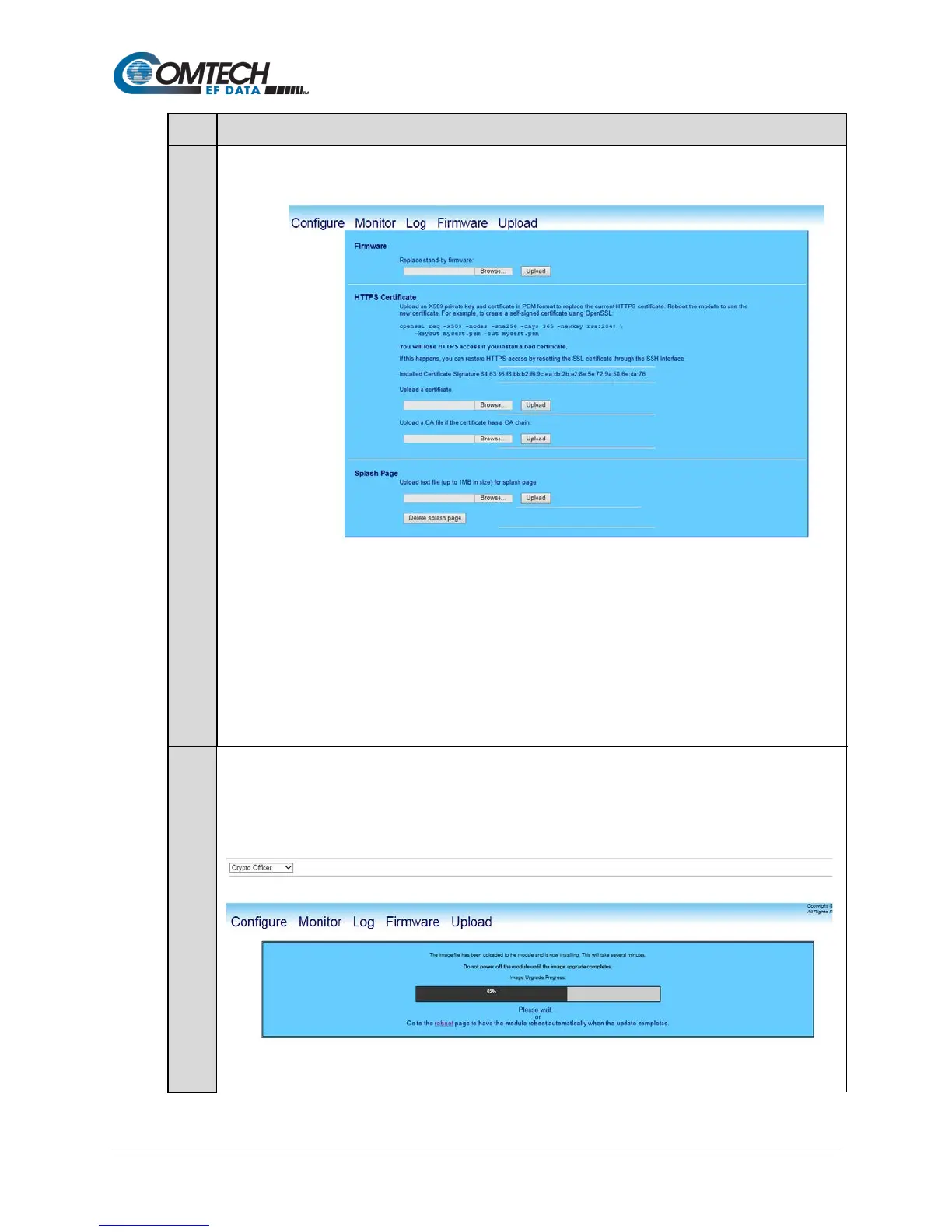 d) Click Upload to begin the Firmware Application Process.