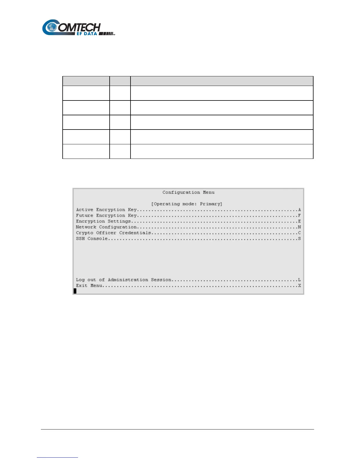 Opens the Comtech EF Data Information screen. It has no other menus. This read-