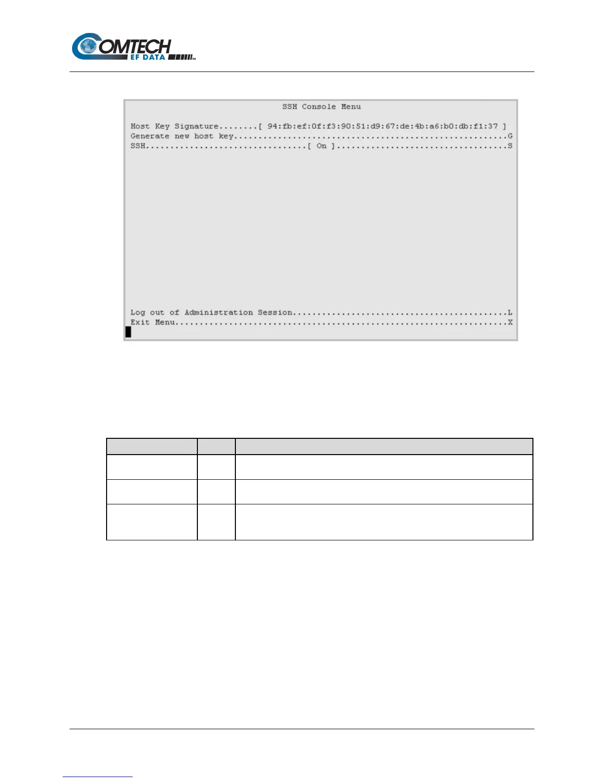 Table 9-8. SSH Console Menu Options
