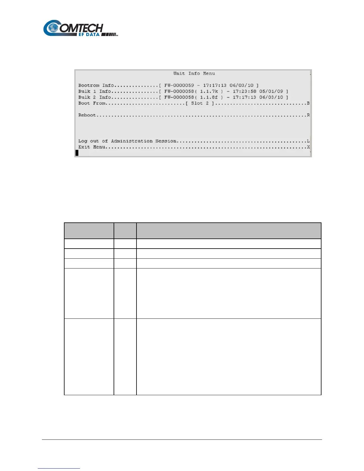 The Unit Information Menu shows information so that you can make sure the correct firmware is