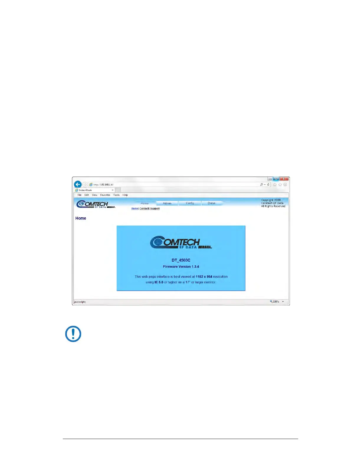 DT-4500 Web Server Interface “splash” page displays, similar to the