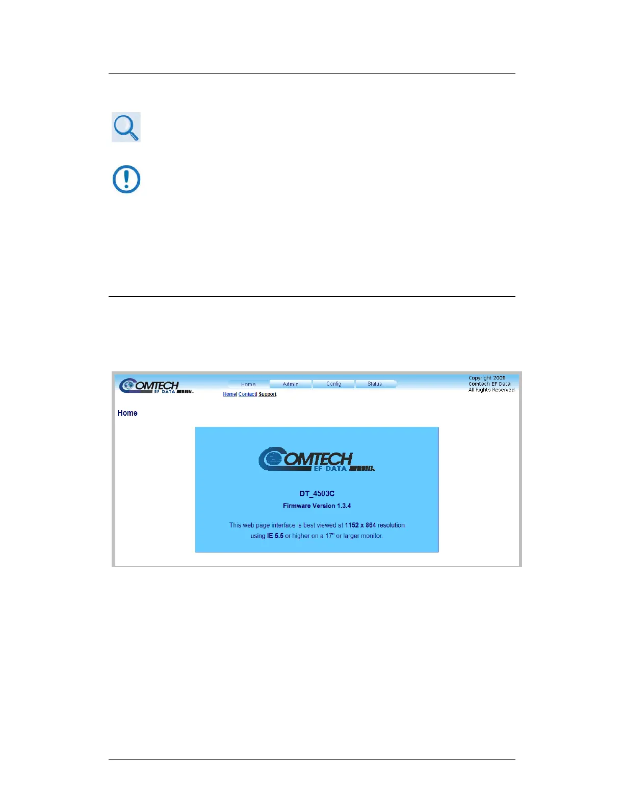 Use this page to identify the product in use. Click the Home navigation tab or the