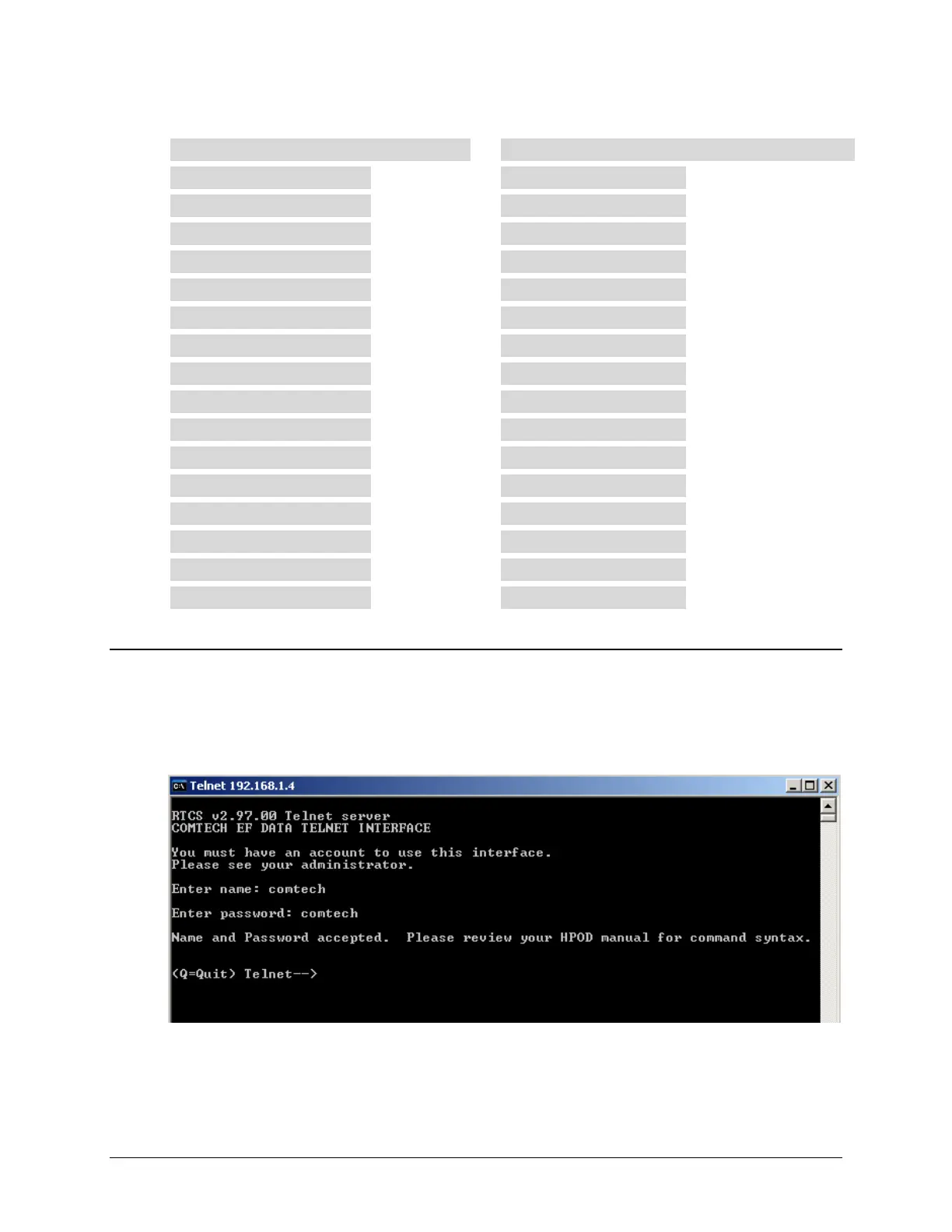 The HPOD has a Telnet interface for the equipment M&C operations. Log in to the Telnet