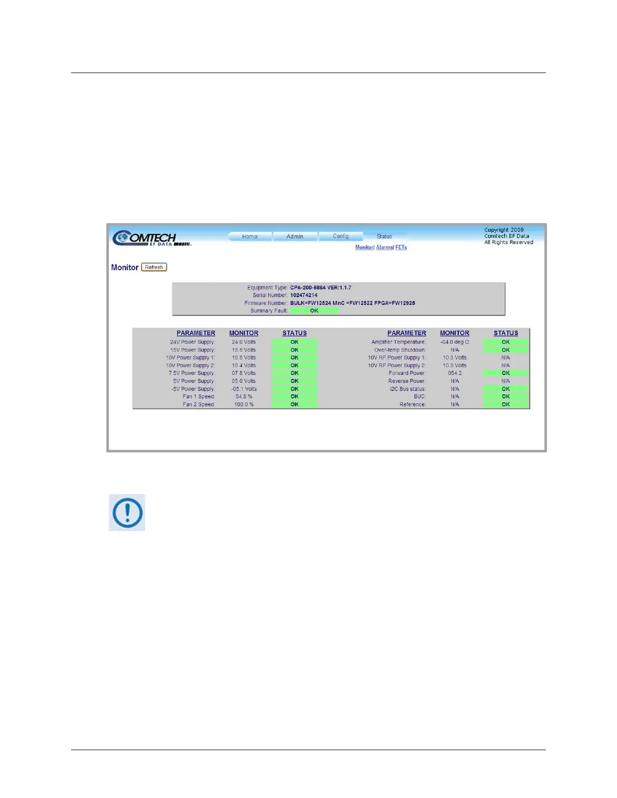 ClicktheStatustab,andthenselecttheMonitor,Alarms,orFETshyperlinktocontinue.