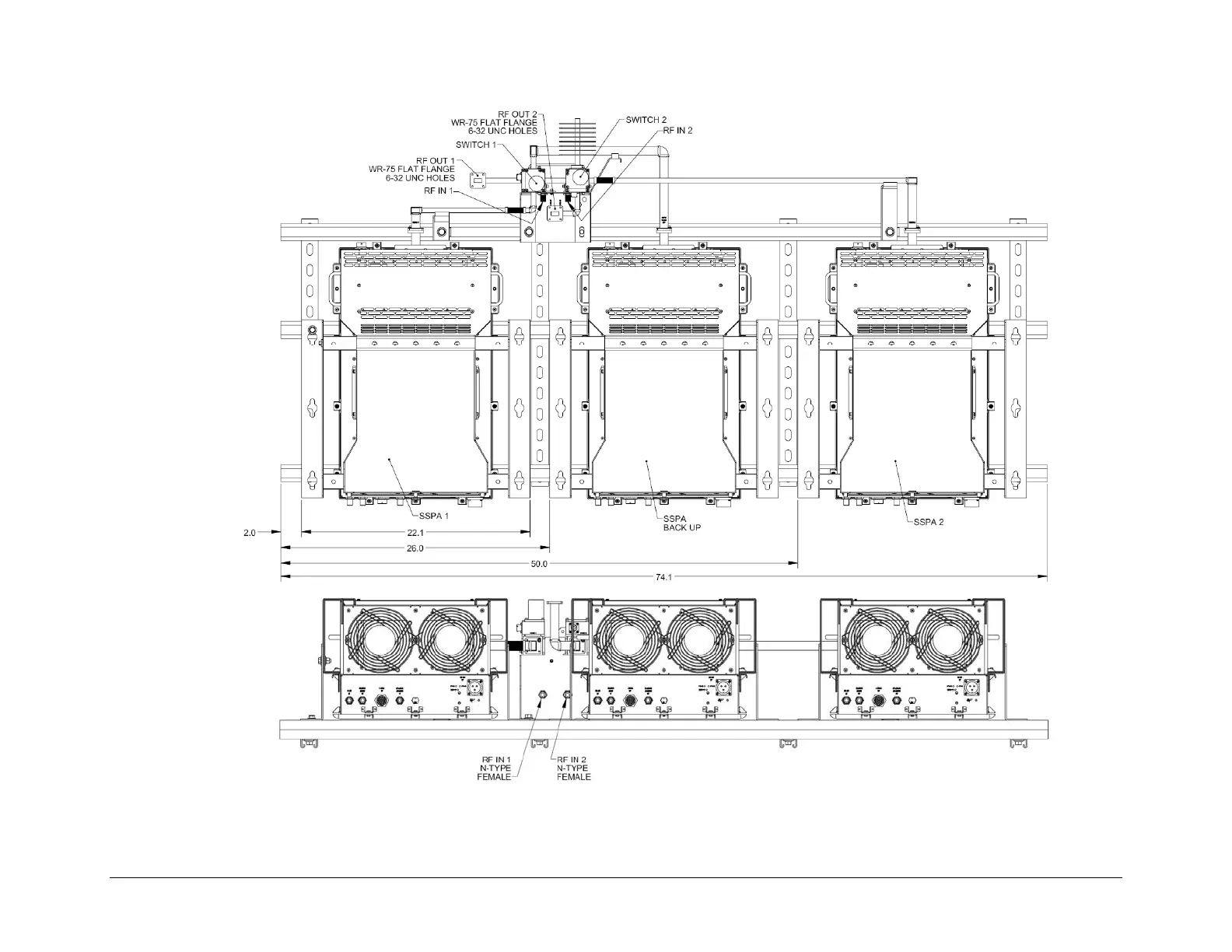 Figure A-24. HPOD Ku-Band 1:2 Redundancy System – Front and Bottom Views