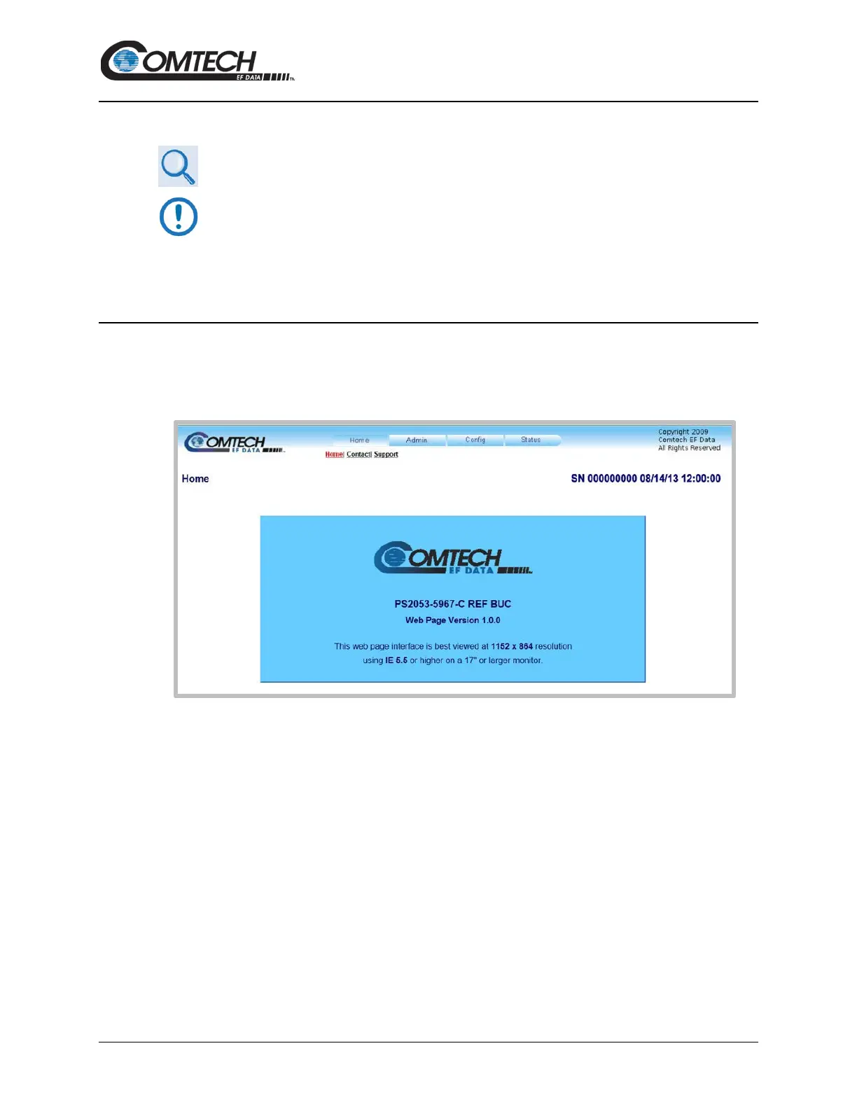 Use this page to identify the product. Click the Home navigation tab or the page hyperlink to