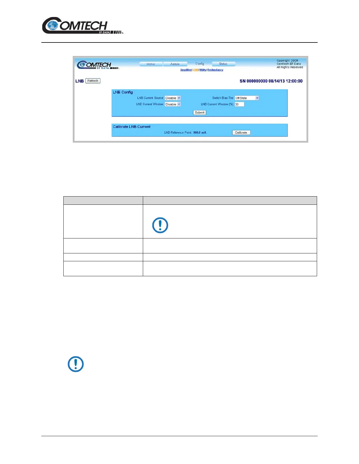 Any LNB current reading that is outside the window may generate an alarm, a fault, or may be
