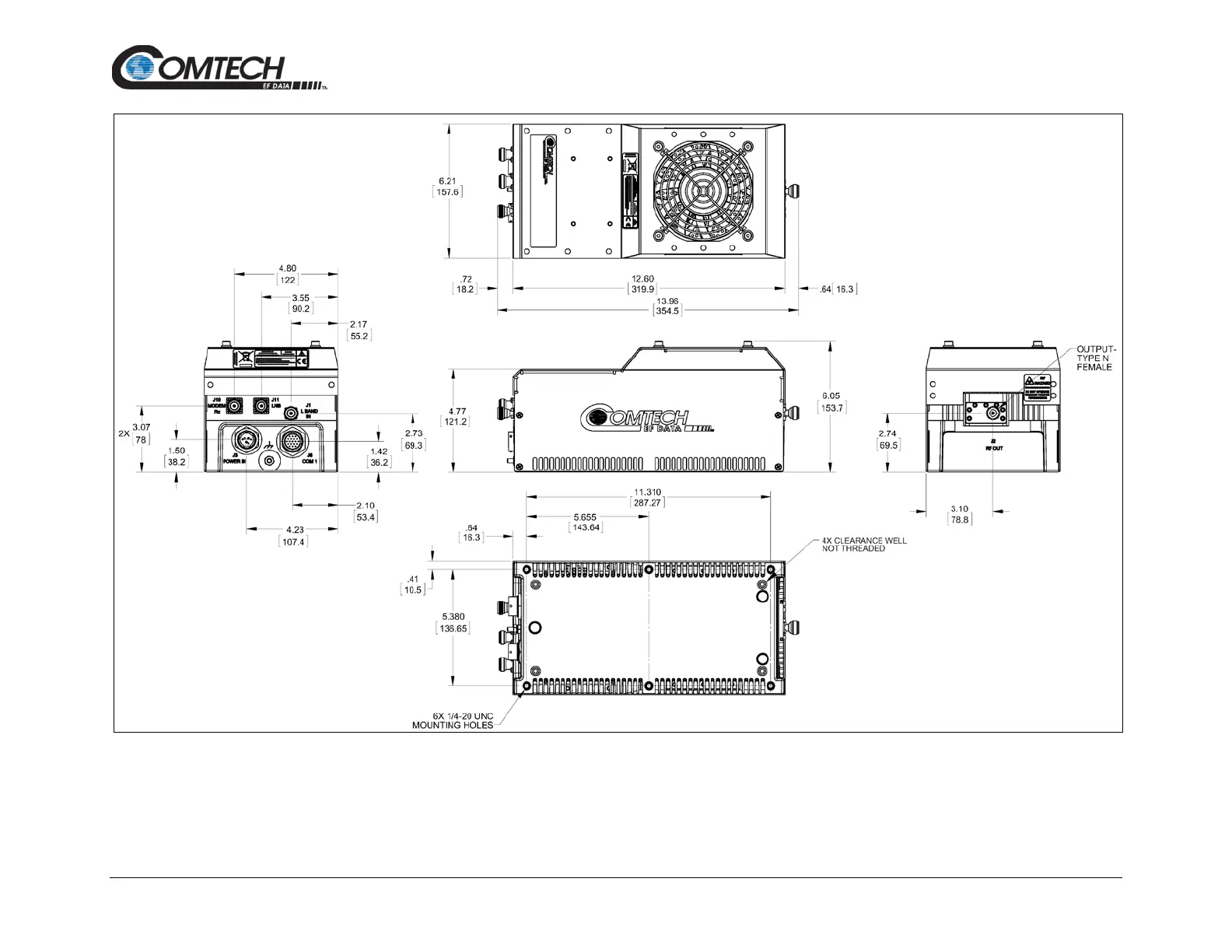 Comtech EF Data LPOD Series - Figure 1-5. LPOD PS 1 C-Band Dimensional Envelope (Coax Output) - Reduced Height Unit