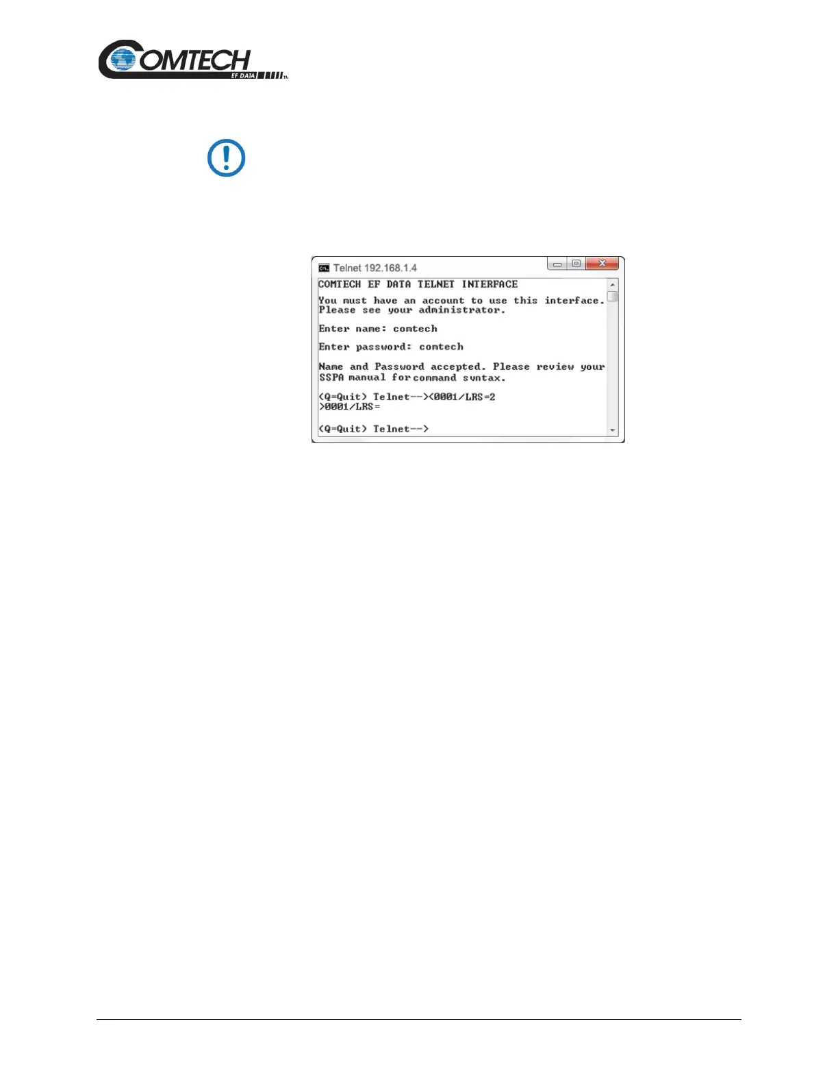 4. Use the LRS=2 remote command to set the remote access parameter for Ethernet