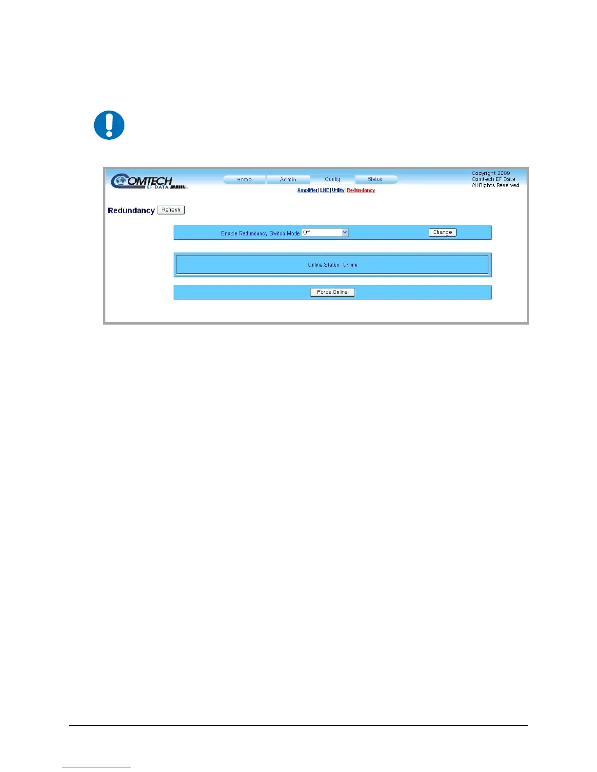 The ‘Config | Redundancy’ page (Figure 4-9) is used to config