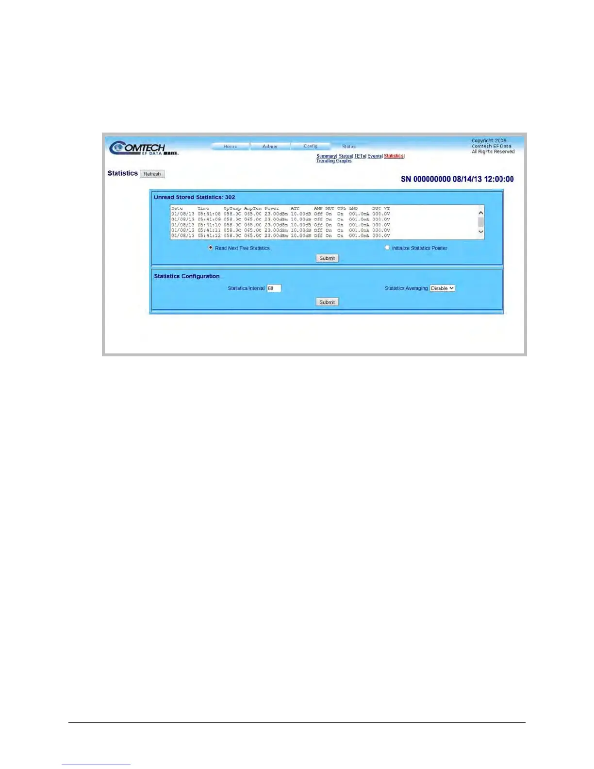 • Read Next Five Statistics – Unit returns the oldest five unread stored statistics that have not