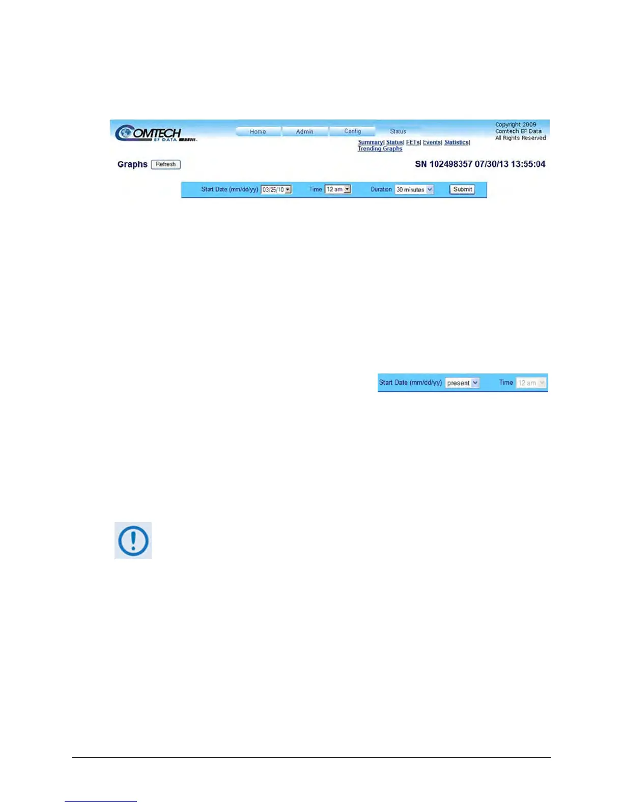 Use the Control Bar to choose the time, date, and duration of the trending information