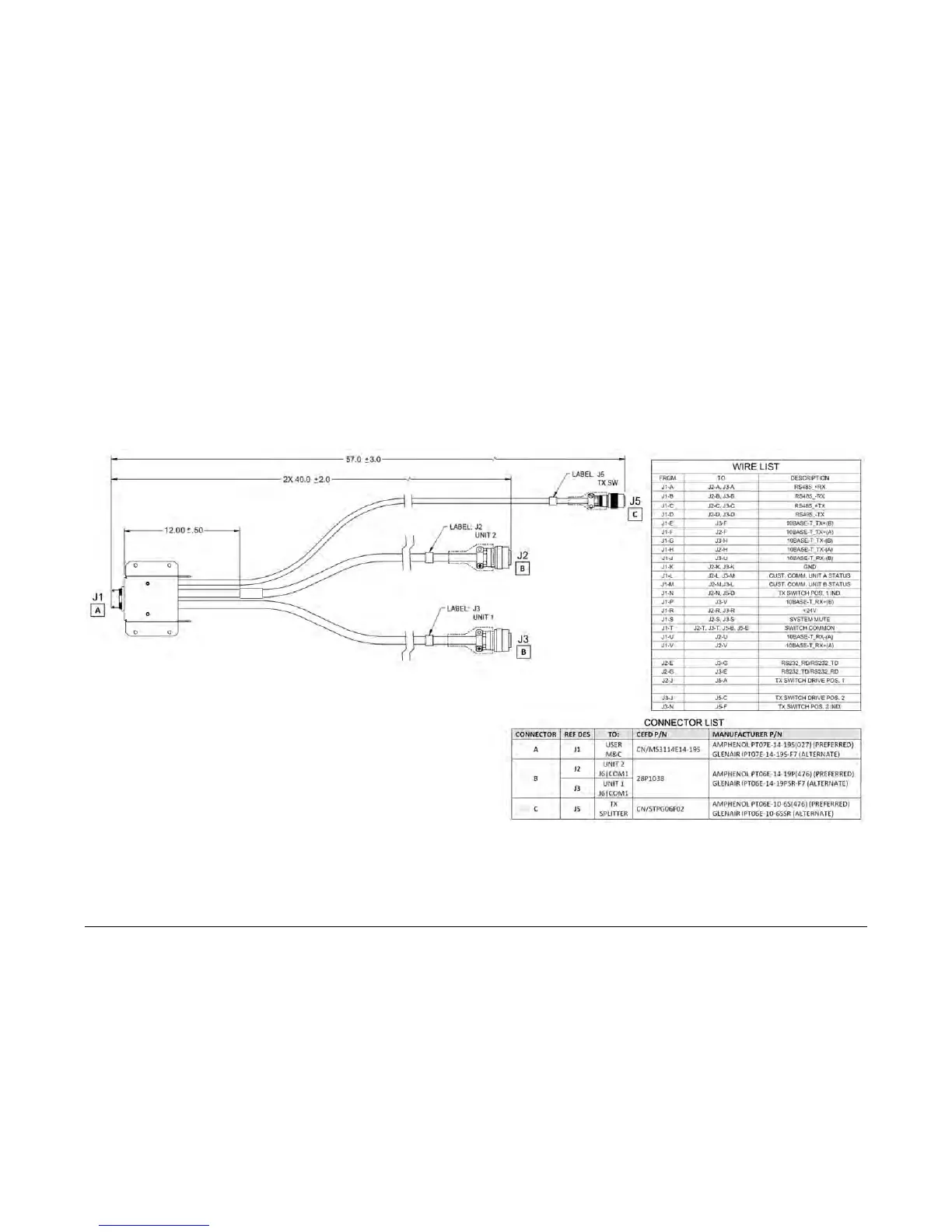 Use the CA-0020655 Redundant Loop Cable for interconnection of 1:1 Redundancy Tx-only applications. Use the ‘J1’ connector to connect to your