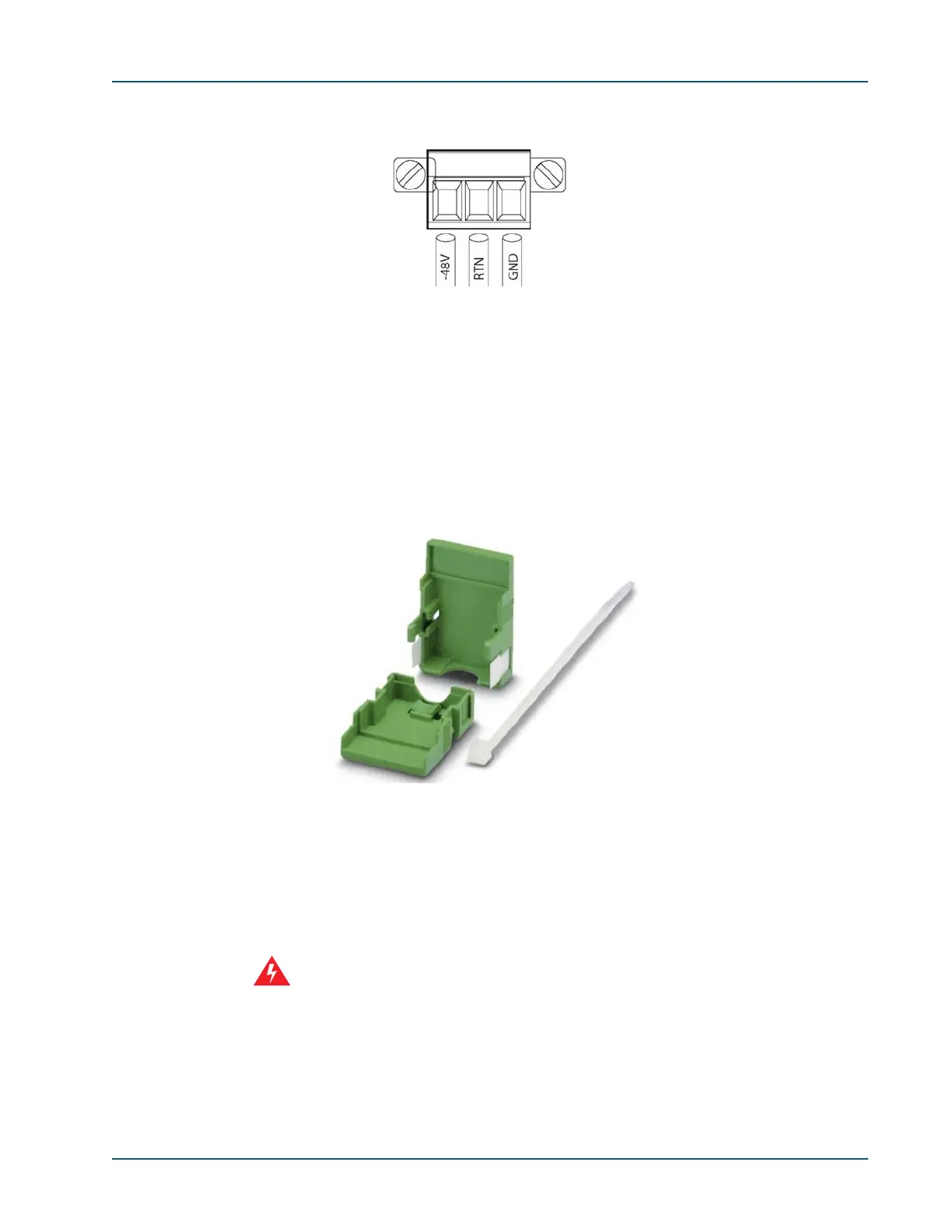 1. Place the -48V wire into the first position on the left. Fasten the retaining screw (just