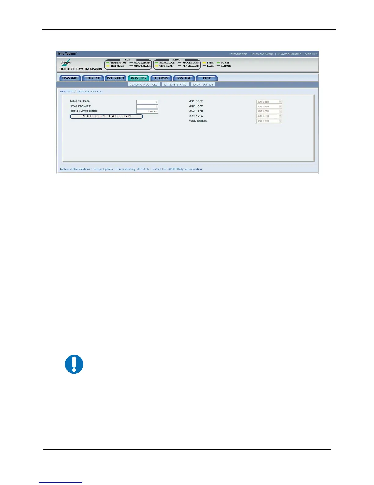 Reset Ethernet Packet Stats: Allows the user to reset the Ethernet packet statistics by pressing