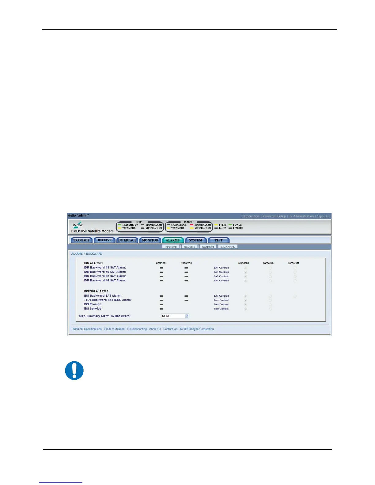 IBS and IDR Backward Alarms are only available via User Interface i.e.